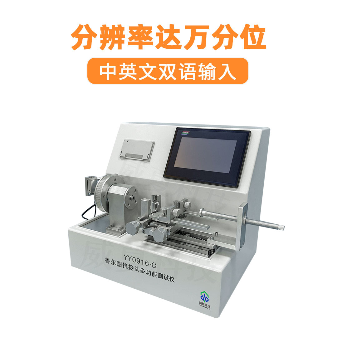 YY0916-C鲁尔圆锥接头综合测试仪主要用于测定鲁尔接头漏液、漏气、分离力、旋开扭矩、易装配性、抗滑丝性、抗过载性、应力开裂、压力衰减泄漏、正压液体泄漏、负压空气泄漏等各项性能。