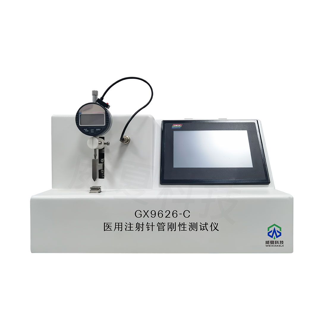 GX9626-C医用注射针管(针)刚性测试仪专门用于测试医用注射针管(针)刚性的物理特性,由可编程控制器,触摸屏,力值传感器,传动装置,机载打印机等组成。