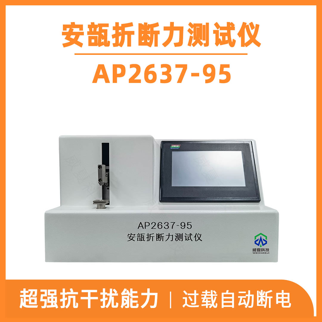 本设备是国家检验生产厂家产品性能的高效检测设备。由可编程控制器,触摸屏,力值传感器,传动装置,机载打印机等组成,提供中英文菜单显示,具备人机对话设定各项参数自动运行测试模式。另增设生产单位,生产批次机打输入,使测试结果更加规范化标准化。信息安全方面采用三级密码,让信息安全可靠。搭配机载打印测试可实时曲线显示测试力值,折断数据。针对测试结果自动判断,不合格则启动自动蜂鸣报警,并由打印机打印出测试数据及结果以供分析。