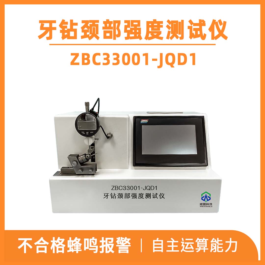 ZBC33001-JQD1 牙钻颈部强度试验仪主要用于测定医用牙钻的强度的物理特性,是鉴定医用牙钻的重要手段之一。