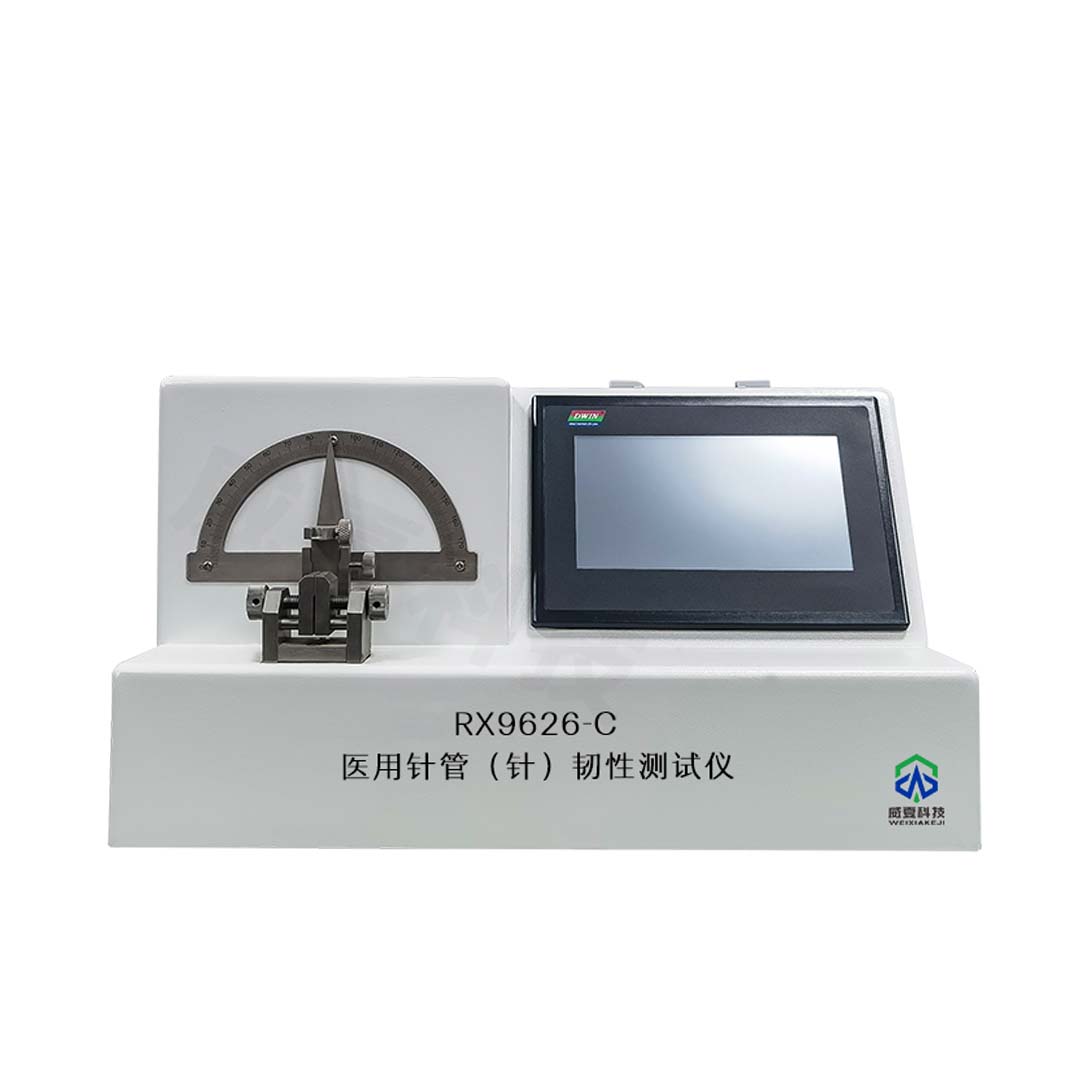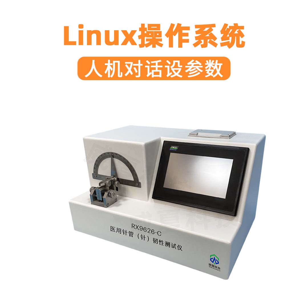 RX9626-C医用注射针管(针)韧性测试仪专门用于测试医用注射针管(针)韧性的物理特性,由可编程控制器,触摸屏,力值传感器,传动装置,机载打印机等组成。